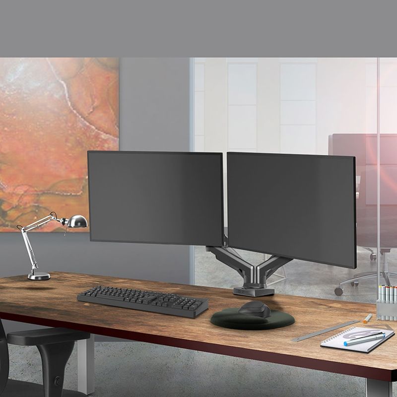 Com o mínimo esforço, posicione os monitores da maneira que desejar, sem a utilização de ferramentas. Possui um design compacto e retrátil, indicado para monitores com peso, sem a base original, entre 2 e 9kg (em cada braço) e compatíveis com padrão de fixação VESA (horizontal x vertical) 75x75 ou 100x100 mm, normalmente encontrado em monitores de 17'' a 35'' polegadas. Possui função estender, girar e inclinar! Ideal para uso em ambientes de trabalho, videoconferências, entretenimento ou jogos.
