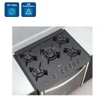 Apresenta mesa em vidro temperador, trempes em ferro fundido, queimador com tecnologia italiana. Forno com capacidade de 110 Litros.
