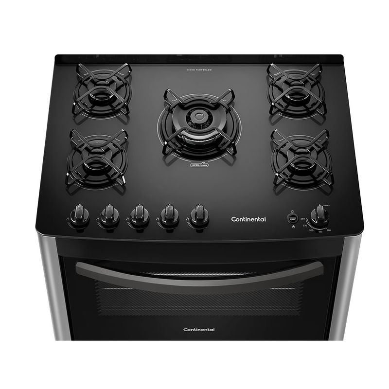 Precisa de um produto prático para sua cozinha? Com mesa de vidro temperado e superfície lisa com poucos recortes, o Fogão 5 Bocas com Mesa de Vidro Temperado Automático Prata FC5VS – Continental é lindo e facilita a limpeza na sua rotina diária da cozinha.