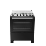 Botão de acendimento automático, puxador em alumínio escovado, forno amplo com revestimento limpa-fácil, trempes com laterais arredondadas.