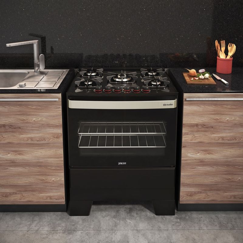 Possui grades da mesa de ferro fundido com 6 pontos de apoio, encaixe exclusivo e queimadores em várias potências para o preparo das suas melhores receitas. Seguindo as tendências de design, o Fogão Mueller Piacere Vetro conta com um diferencial único, um anel vermelho nos botões que pode ser removível, permitindo que você personalize o fogão do seu jeito.
