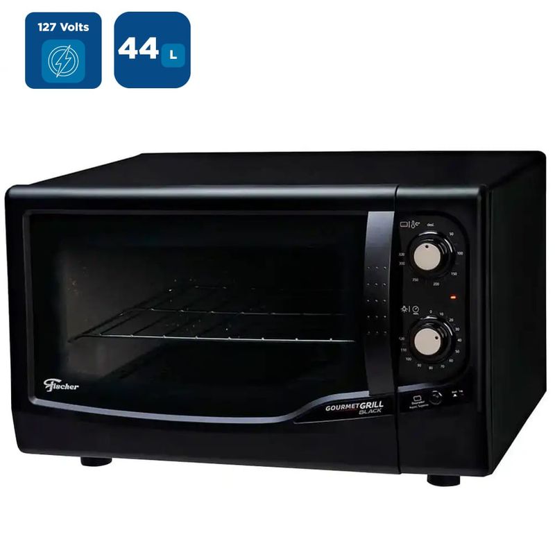 O Forno Elétrico Fischer 44 Litros Gourmet Grill Preto possui pés antiderrapantes que oferecem mais estabilidade e segurança no uso do produto. Além disso, o vidro duplo tem a função de manter por mais tempo o calor interno, conservando a temperatura dos assados e reduzindo o consumo de energia elétrica. Com controle de temperatura automático de 50ºC a 320ºC e timer de até 120 minutos, é perfeito para a sua cozinha.