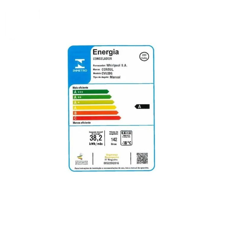 Freezer Vertical Consul 142 Litros CVU20GB – 220 Volts