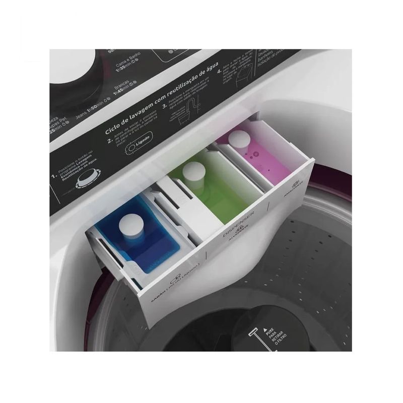 Seu dispenser triplo de gaveta para sabão em pó ou líquido, alvejante e amaciante permite ajustar a dosagem dos produtos de acordo com a quantidade de roupas e água na cuba. Seu sistema de lavagem por agitação oferece ótimo desempenho na lavagem de roupas mais sujas. Possui também filtro de fiapos localizado no agitador, que proporciona roupas limpas e sem fiapos.