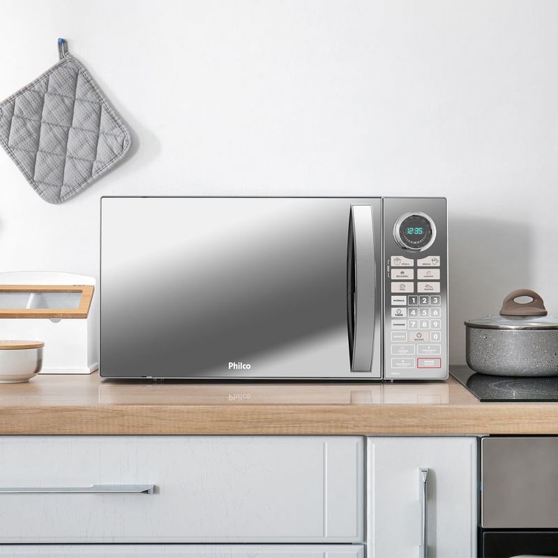 Com o Micro-ondas Philco 30 Litros Cinza Espelhado PME31 - 220 Volts sua cozinha fica moderna e alegante. Além de facilitar a sua rotina, pois é potente e oferece praticidade a todo momento.